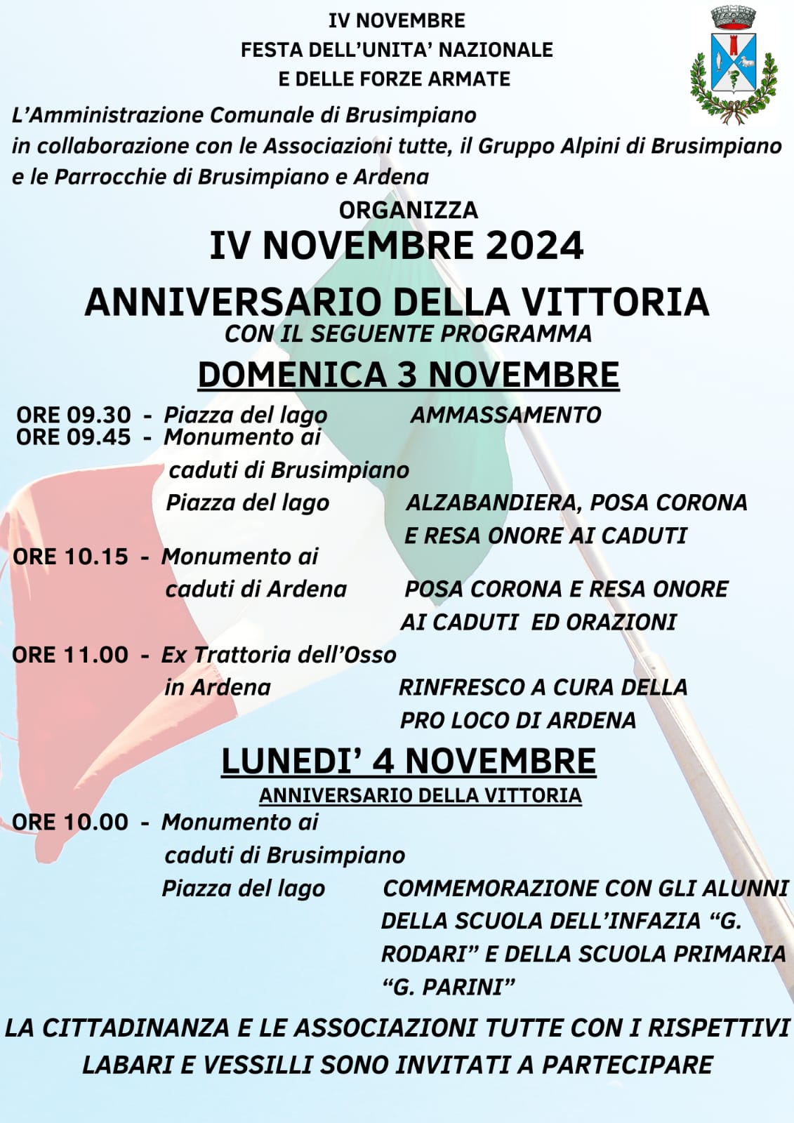 Comune di Brusimpiano - Associazioni di Brusimpiano, Gruppo Alpini e Parrocchie di Brusimpiano e Ardena