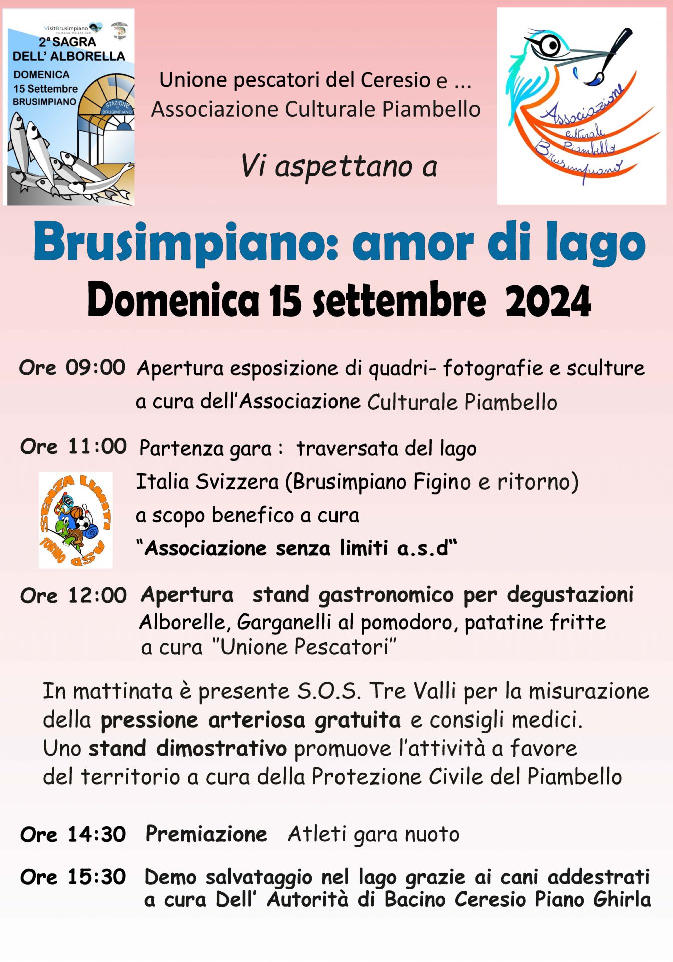 ore 11.00 Partenza gara: traversata del lago Italia Svizzera (Brusimpiano Figino e ritorno) a scopo benefico
