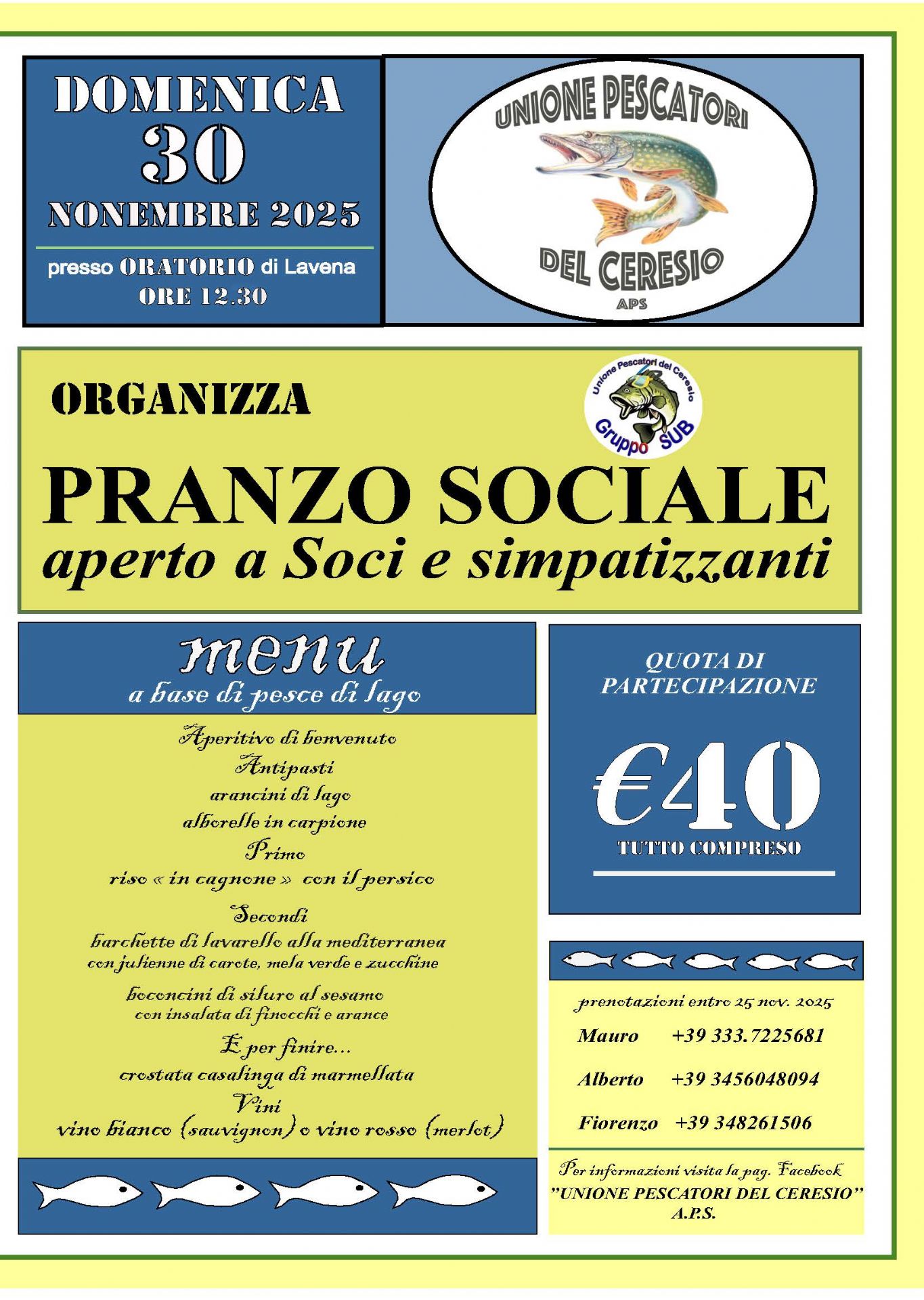 Descrizione vedere locandina Costo A pagamento vedere locandina Organizzato da Unione Pescatori del Ceresio Ultimo aggiornamento pagina: 04/11/2025 08:27:28