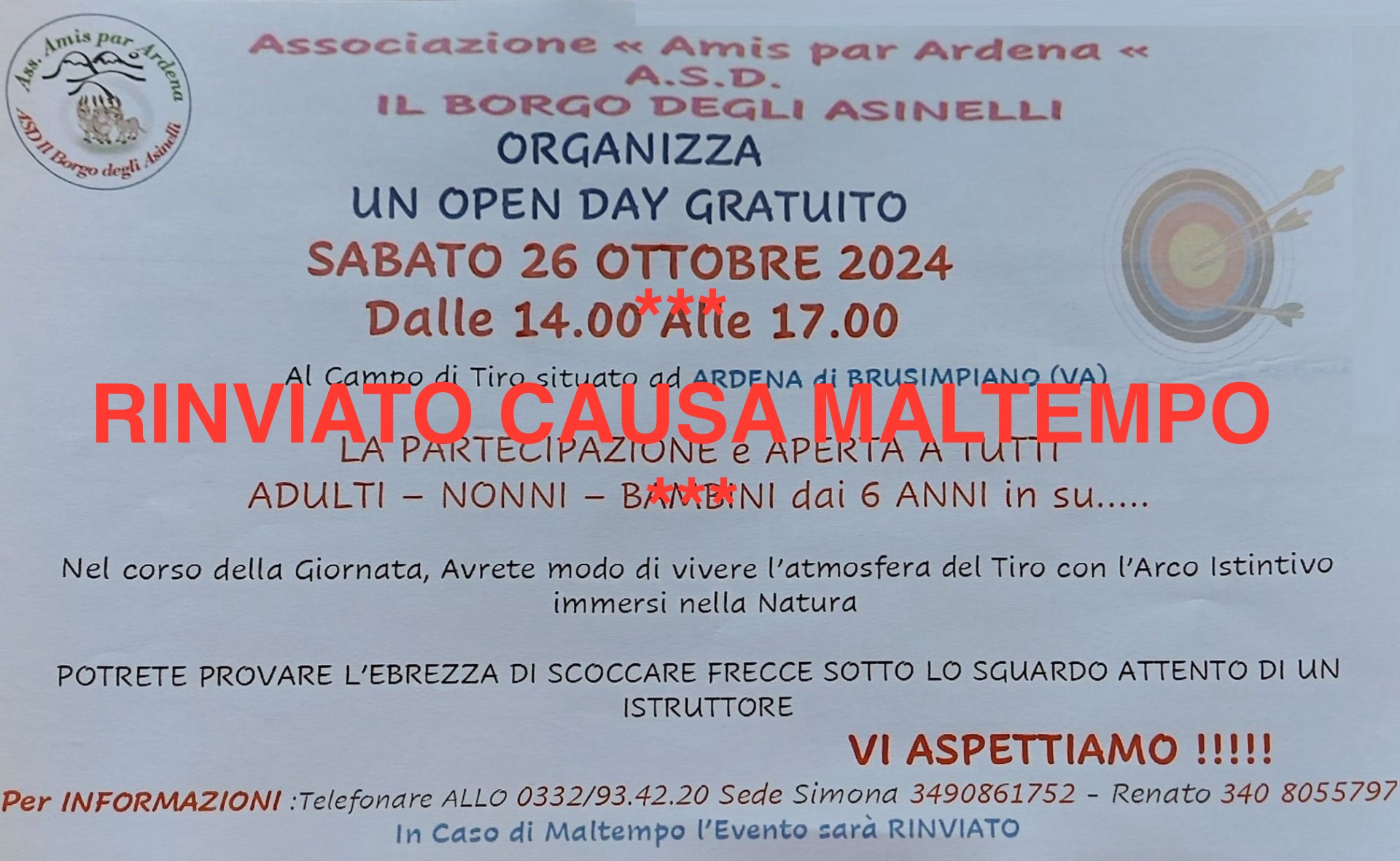 *** RINVIATO CAUSA MALTEMPO *** Open Day Tiro con L'Arco