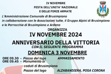 Domenica 3 Novembre: ORE 09.30 - Piazza del lago: Ammassamento ORE 09.45 - Monumento ai caduti Piazza del lago: Alzabandiera, posa corona e resa onore ai caduti ORE 10.15 - Monumento ai...